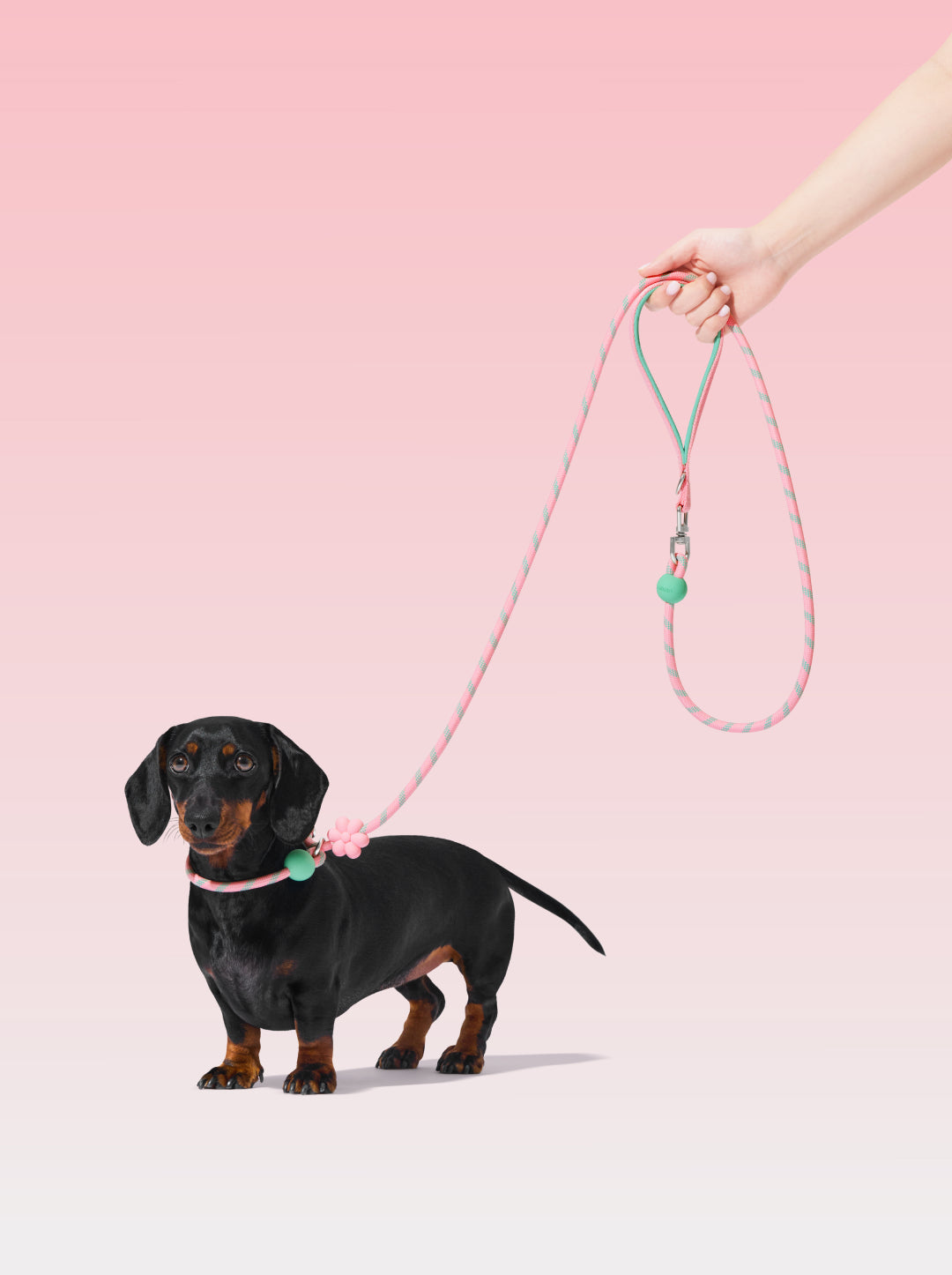 Adjustable to fit dogs big and small, its clever double-stopper system ensures safe control with a simple pull-tight mechanism: no choking, no escaping, just smooth gliding and instant security. The circular leash structure resists twisting, thanks to a 360° rotating swivel clip, and its premium climbing-grade rope and reinforced metal hardware withstand up to 150kg of force — powerful yet featherlight at just 125g. Featuring bright dopamine-inspired colorways and non-toxic food-grade silicone stoppers, this leash is the lighter, faster, breezier member of the VETRESKA CONNECT family. Easy to clean, quick to wear, and impossible to miss.
